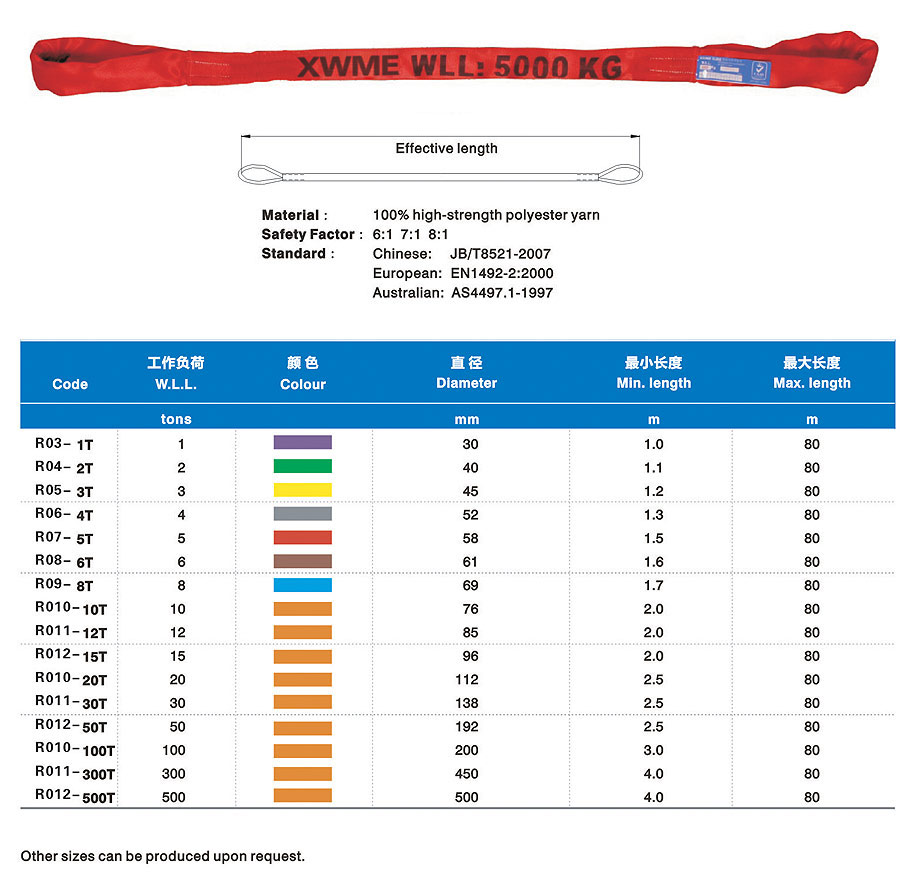 Synthetic fabric lifting belt (hereinafter refers to lifting belt) is a kind of soft lifting belt made of non-metallic materials and successor production of wire rope and chain in the lifting industry which is lighter and more convenient than similar metal and can solve the difficult problems such as large tonnage but small lifting space in the lifting process. The lifting belt is light, convenient and durable. Additionally, it has a noticeable earthquake effect, non-conductive performance, anti-corrosion and protects hanging items from being scratched. Many fracture experiments proved that lifting belt almost inflict zero reverse damage to metallic rope chain. The lifting belt adopts international standard colors to distinguish carrying tonnage. In the application process, carry tonnage can be distinguished by lifting belt jacket color if label on lifting belt wears Synthetic fabric lifting belt was used worldwide in the early days and has an application history spanning over fifty years. After being popularized in China for more than twenty years, it has gradually replaced wire rope rigging and chain rigging in many industries.