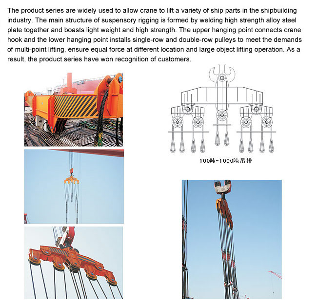 The company undertakes projects such as design, production and processing of large lifting device and meets the demands of different industries. The lifting devices include: slab lifting device, plate lifting device, steel coil lifting device, folktruck steel coil lifting device, container spreader, hanging beam and suspensory rigging and other supporting tools used in port hoisting, shipyard, metallurgy, heavy business and other hoisting operation. Our products boast rational design, high quality and stable performance and passed China CCS Certification. As a result, our products have won recognition from our customers by virtue of safety and reliable performance.