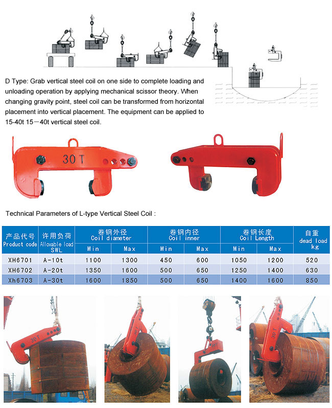The company undertakes projects such as design, production and processing of large lifting device and meets the demands of different industries. The lifting devices include: slab lifting device, plate lifting device, steel coil lifting device, folktruck steel coil lifting device, container spreader, hanging beam and suspensory rigging and other supporting tools used in port hoisting, shipyard, metallurgy, heavy business and other hoisting operation. Our products boast rational design, high quality and stable performance and passed China CCS Certification. As a result, our products have won recognition from our customers by virtue of safety and reliable performance.