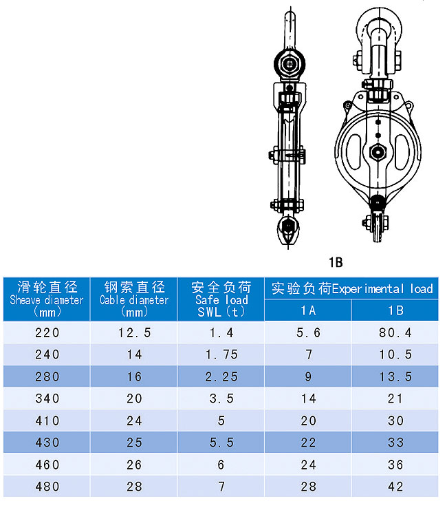 滑車(chē)按輪數(shù)的多少分為單門(mén)滑車(chē),雙門(mén)滑車(chē)和多門(mén)滑車(chē)。按滑車(chē)與吊物的連接方式可分為吊鉤式滑車(chē),鏈環(huán)式滑車(chē),吊環(huán)式滑車(chē)和吊架式滑車(chē)四種。一般中小型的滑車(chē)多司于吊鉤式、鏈環(huán)式和吊環(huán)式,而大型滑車(chē)采用吊環(huán)式和吊梁式。按輪和軸的接觸不同可分為輪軸間裝滑動(dòng)軸承及滾動(dòng)軸承兩種。按夾板是否可以打開(kāi)來(lái)分,有開(kāi)口滑車(chē)和閉口滑車(chē)。開(kāi)口滑車(chē)的夾板是可以打開(kāi)的,便于裝繩索,一般的都是單門(mén)滑車(chē),它常用于扒桿底腳處作導(dǎo)向滑車(chē)用。滑車(chē)按使用的方式不同又分為定滑車(chē)和動(dòng)滑車(chē)。使用方便,用途廣泛,可以手動(dòng),機(jī)動(dòng)。主要用于工廠(chǎng)、礦山、農(nóng)業(yè)、電力、建筑的生產(chǎn)施工,碼頭、船塢、倉(cāng)庫(kù)的機(jī)器安裝,貨物起吊等。
