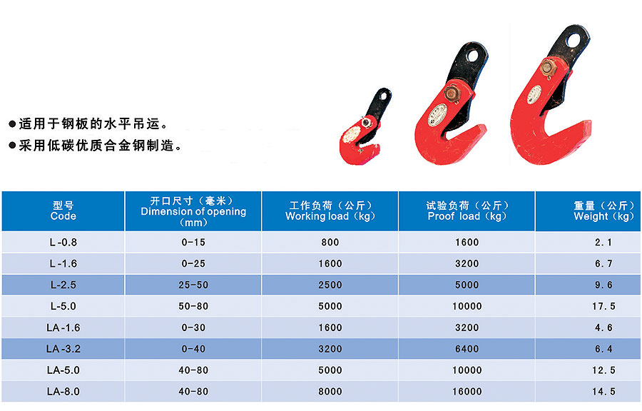 鋼板鉗主要是應(yīng)用在鋼板的水平、豎直吊運,型鋼及油桶的吊運等方面。由于鋼板鉗采用的是合理的力學(xué)原理,使其具有體積小、重量輕、使用安全、結(jié)構(gòu)緊湊、結(jié)構(gòu)緊湊、安裝調(diào)整方便,工作效率高等諸多特點。
